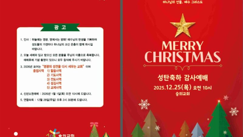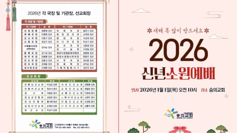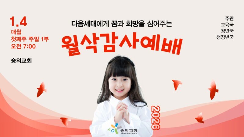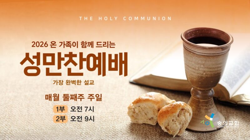 정기행사소식 a 주보 특별소식 정기행사소식 2026 성만찬예배 2026 월삭 감사예배 2026 신년 소원예배 2025성탄예배 중추절 행사 금요 성령의 불기도회 월삭 감사예배 실업인선교회 성만찬 전도 캠페인 새벽기도회 숭의 TEE 성경대학 2기 12»마지막